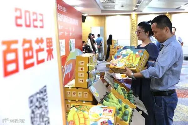 2023年7月18日,由广西百色田东县商务局主办,广州飞天诚信云商科技有限公司承办,以“党旗领航·助力乡村振兴”为主题的2023百色·田东芒果文化活动月暨百色芒果新品牌发布会在广州举行,正式发布了广西百色田东县全力打造的农产品新品牌——百色芒果,赋能特色农业产业发展,助力产业兴、百姓富、乡村美。