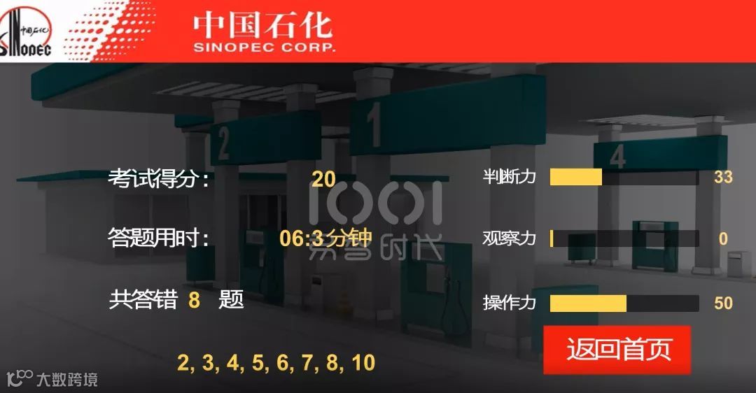 系统正式开启后,体验者将根据指示依进入配电室、加油站、卸油机等场景,通过观察现场环境和发生事件回答系统设置的题目,考核题目分为单选题、多选题和实操题。
