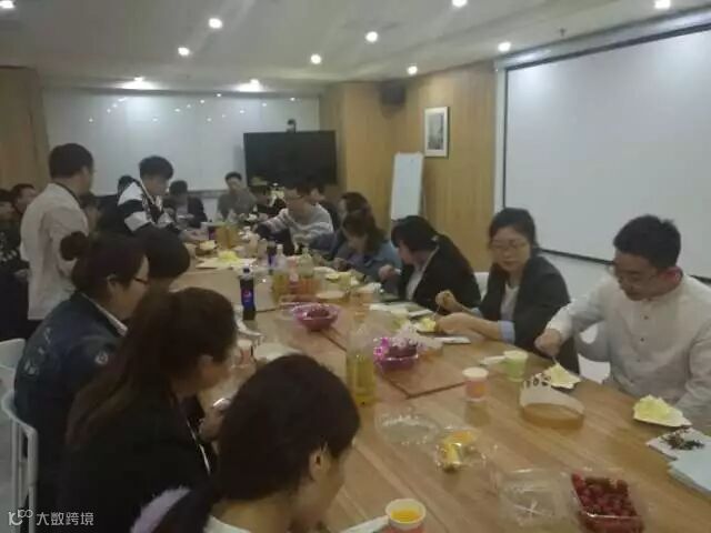 大家一起吃蛋糕,吃水果,聊天,