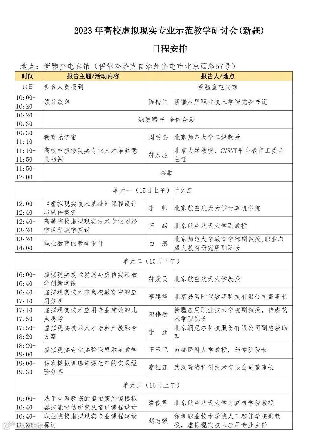 为服务国家《十四五规划》虚拟现实数字经济重点产业,深化新技术交叉融合的新工科建设,推进虚拟现实专业发展规划及做优一流学科建设,8月15日,2023年教育部虚拟现实技术及应用虚拟教研室师资培训高级研修班暨高校虚拟现实专业示范教学研讨会在新疆应用职业技术学院隆重举行。