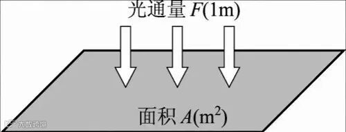入射在包含该点的面元上的光通量 dΦ 除以该面元面积 dA 所得之商,单位为勒克斯 (lx),1 lx=1 lx/㎡。
