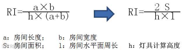 表示房间或场所几何形状的数值,其数值为2倍的房间或场所面积与该房间或场所水平面周长及灯具安装高度与工作面高度的差之商。