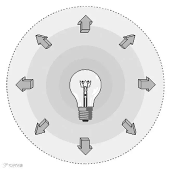 发光体在给定方向上的发光强度是该发光体在该方向的立体角元 dΩ 内传输的光通量 dΦ 除以该立体角元所得之商,即单位立体角的光通量。