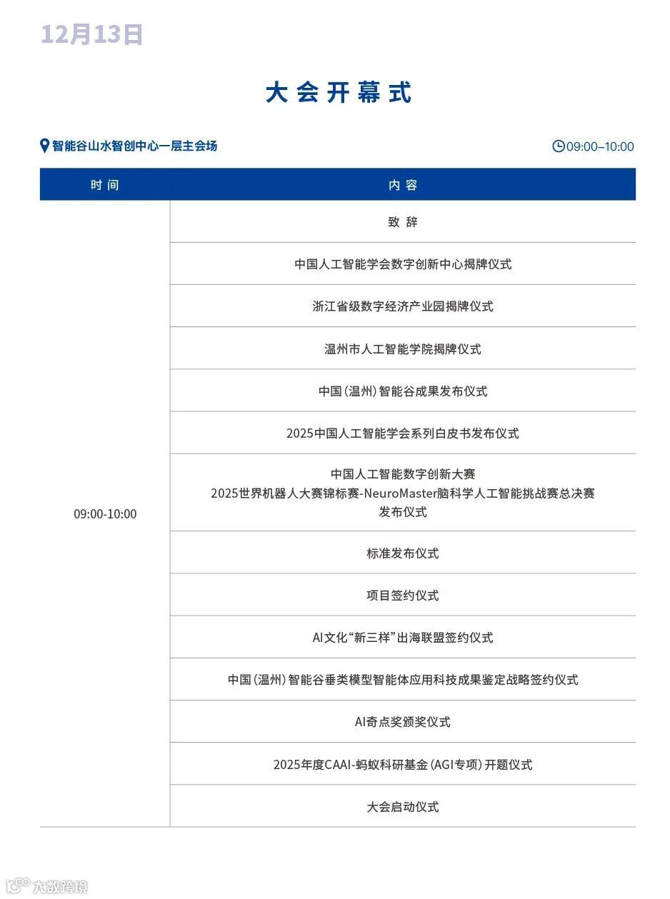 倒计时1天!由中国人工智能学会、中国(温州)智能谷联合主办的 2025中国人工智能数字创新大会将于12月13—14日在浙江温州举办。一场汇聚智慧、链接未来的AI数字创新盛宴即将开启!