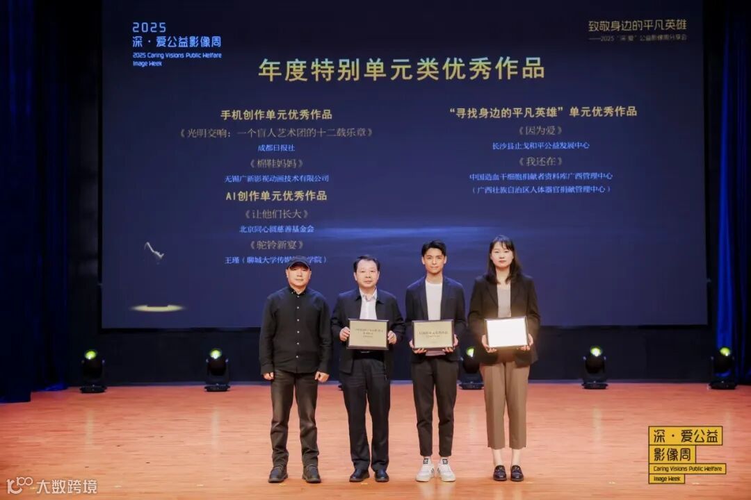 值得一提的是,最佳剪辑奖作为非AI类奖项,在评审中与传统影视作品同台竞技,不分技术类别,体现了AI内容在艺术融合上的突破。同时,元音科技也在2025深·爱公益影像周上宣布了首部AI公益长片《路》正式立项的好消息。