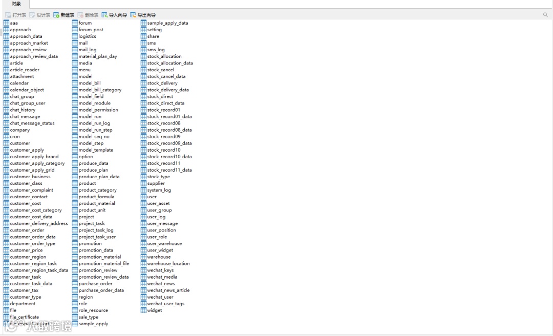 第一步就是数据表的创建,在白码平台上创建出对应的数据表(例如:订单列表、客户列表等)。