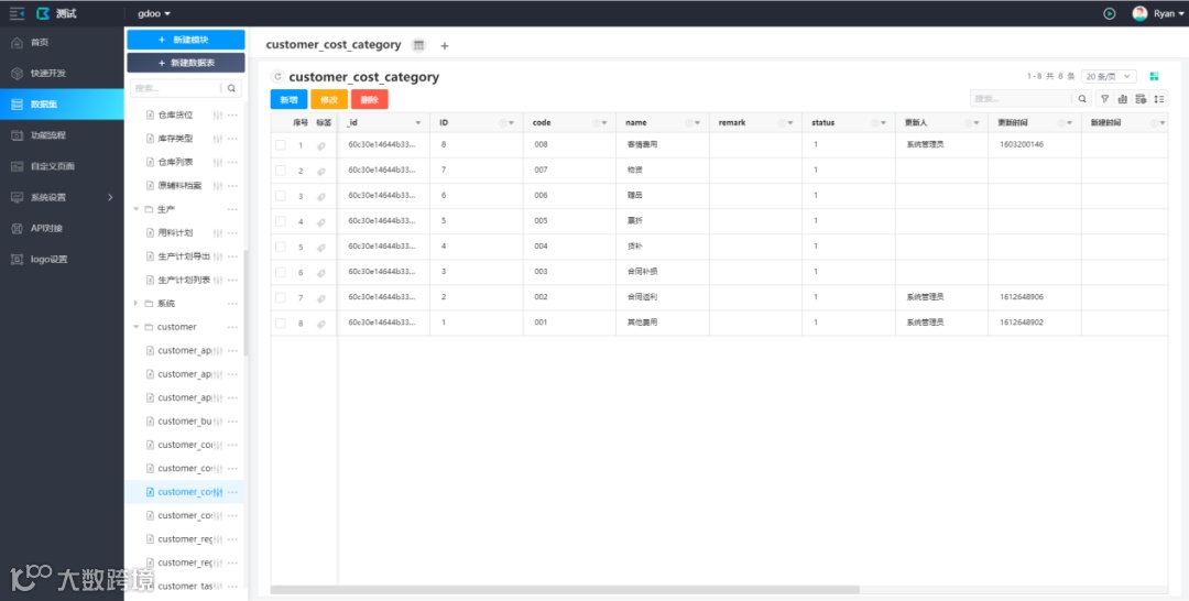申请内测资格并通过后,白码工作人员很快就联系了我,指导我如何使用数据对接功能。经过指导并参考他们提供的示例后,我尝试了独自对接系统中的订单模块,包括数据表的对接、功能的搭建等一系列的操作。最终在白码平台上复刻了订单模块上的功能,并且在白码上进行数据操作(通过功能实现的操作)后,在原有的gdoo这个系统上也能看见,数据也可以成功地存储到原有数据库中。