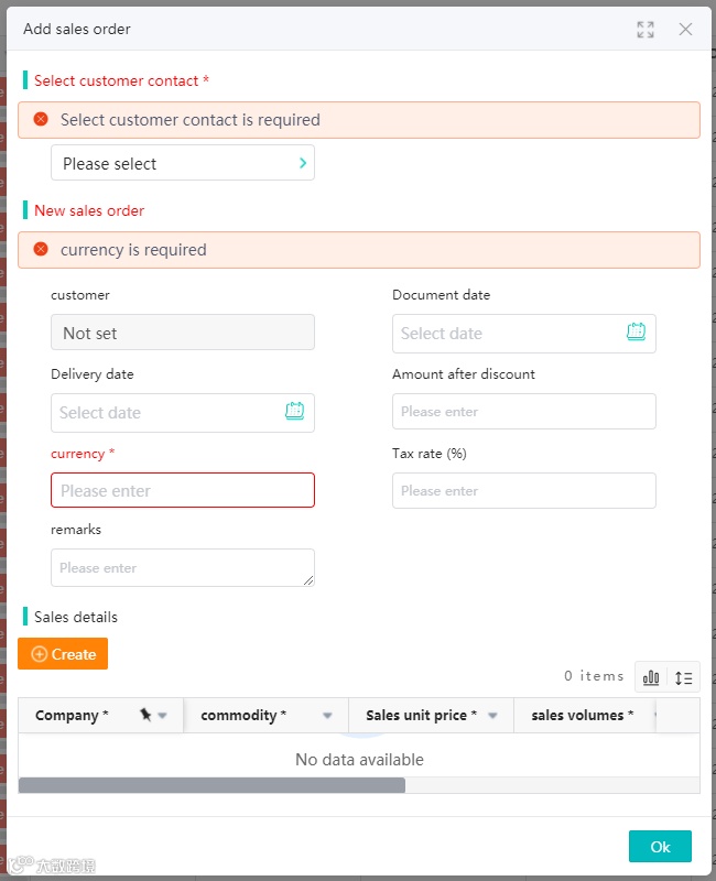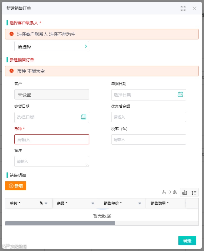 下面以新建销售订单功能的表单为例,展示效果。