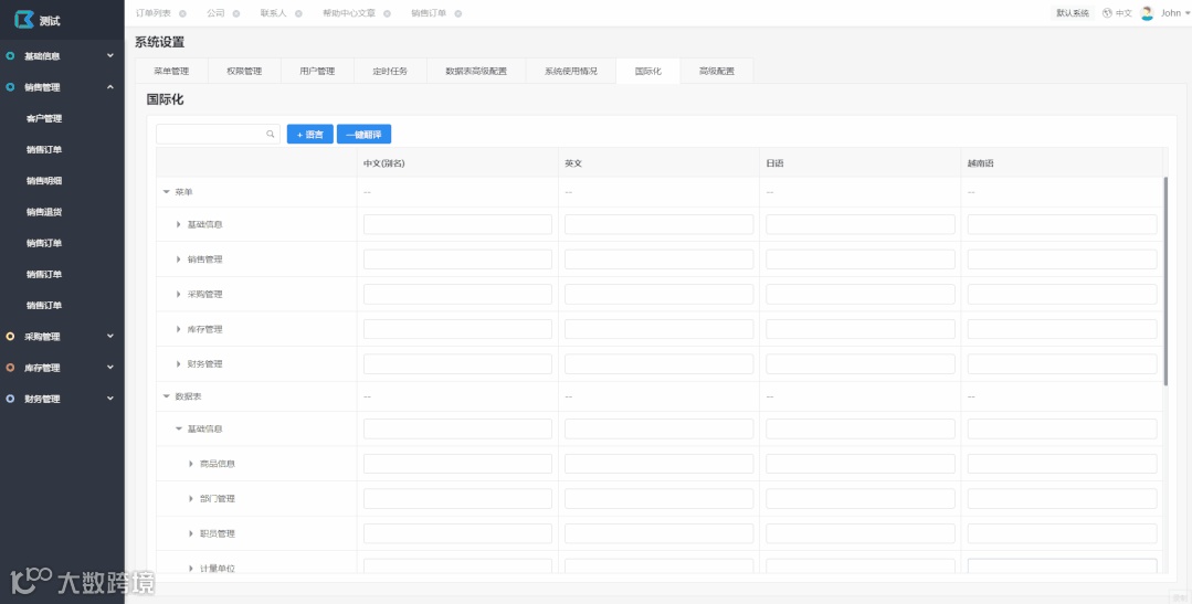 管理员可在国际化设置页面使用“一键翻译”功能。