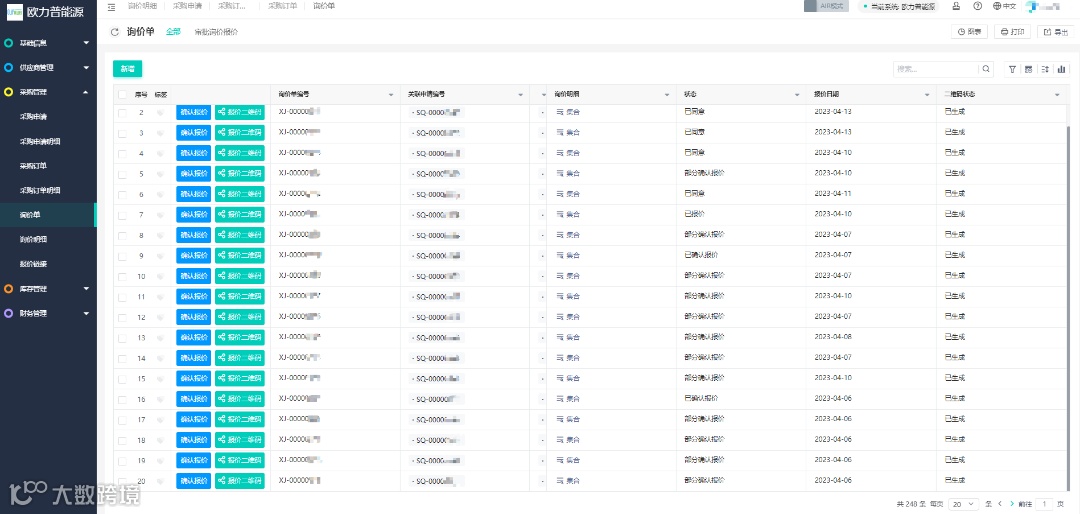 欧力普能源采购管理系统通过显示不同的状态,直观的显示询价单的进度,同时可以对订单进行筛选,快速筛选不同状态的询价单。