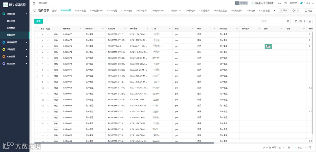 欧力普能源采购管理系统帮助客户进行物料多视图的分类,方便客户快速的查看所需物料的详细信息。