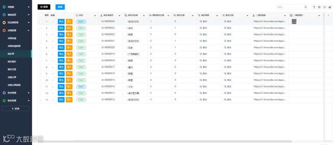 在使用白码低代码平台开发的采购管理系统之前,我们一直面临着供应商评估过程繁琐、无法快速向供应商询价的问题。导致无法以快速又实惠的采购价去生成采购单,经常浪费人力去向供应商询价和统计相应报价。