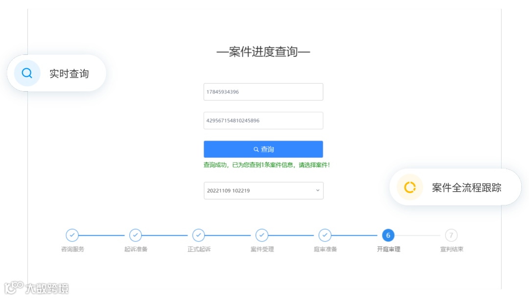 案件进度查询更精准:对案件全流程进行跟踪,用户能够实时查询并且更精准快速的了解案件进度。