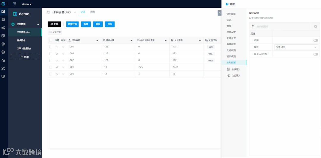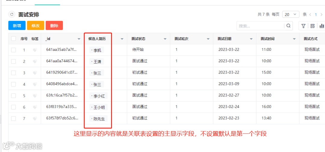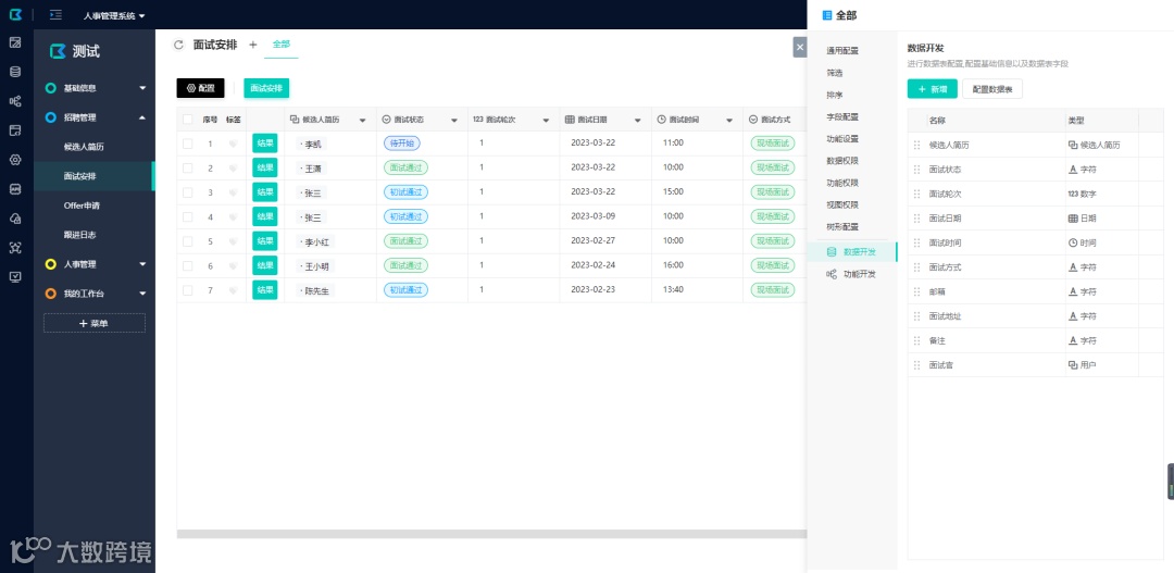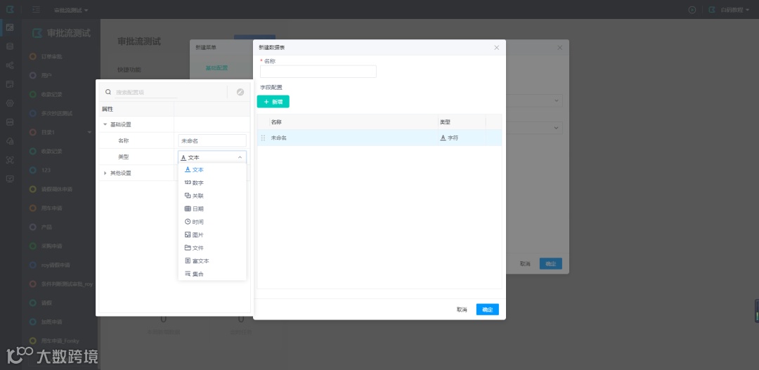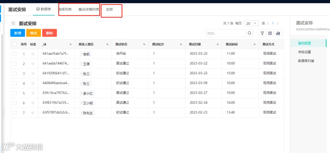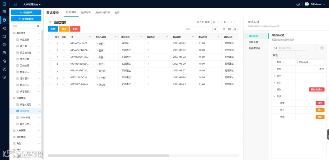 数据管理相当于系统后台的数据库,可查看所有已经创建好的数据表及数据。