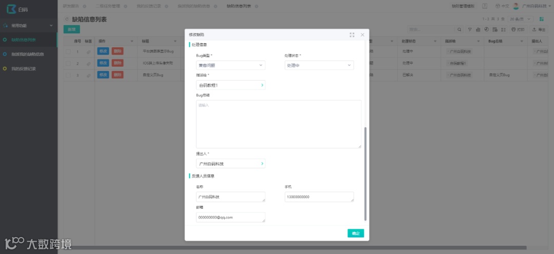 企业缺陷管理系统统一管理字段,缺陷管理全方位记录,所有管理记录可溯源。