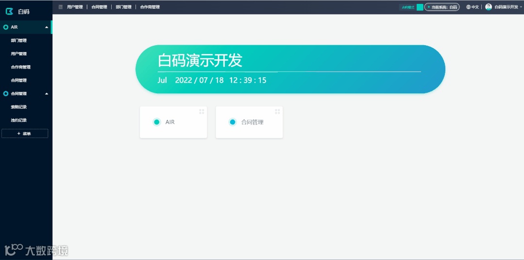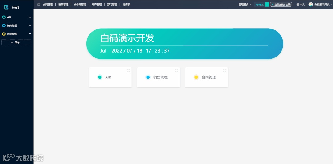白码AIR是基于白码用户端(应用层)的一个全新表单引擎,通过白码AIR,用户可以自己构建自己需要的视图,菜单,软件界面元素等。也可以在用户端构建自己的表单字段,关联字段,获取关联字段等;并且,针对单个字段,还可以设置一个公式或函数,获取并转化成你想要的数值。通过AIR模式下让普通用户也可以更高效、更灵活地使用软件。