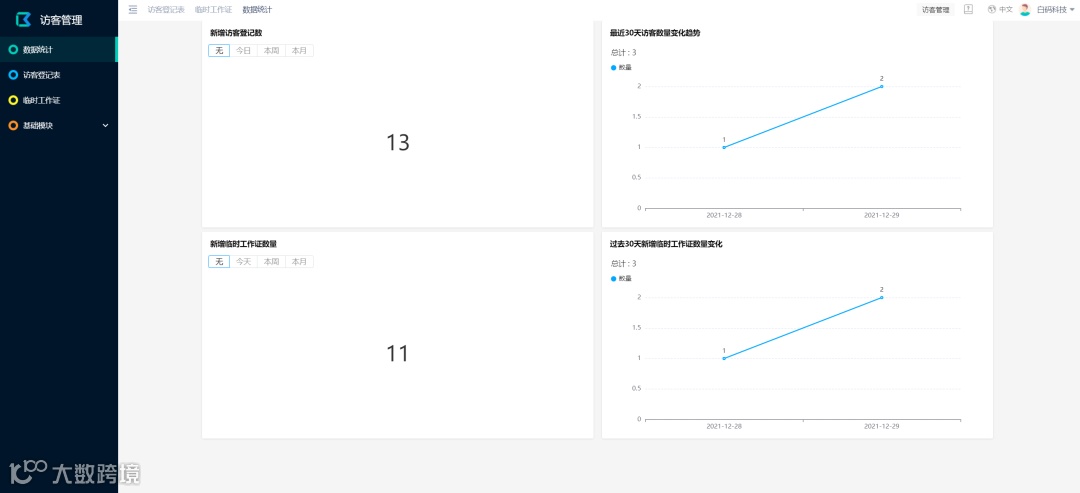 一个实用的访客管理系统,可以记录园区内公司的基础信息,对来园区进行临时工作、预约拜访等类型的访客做好登记管理。