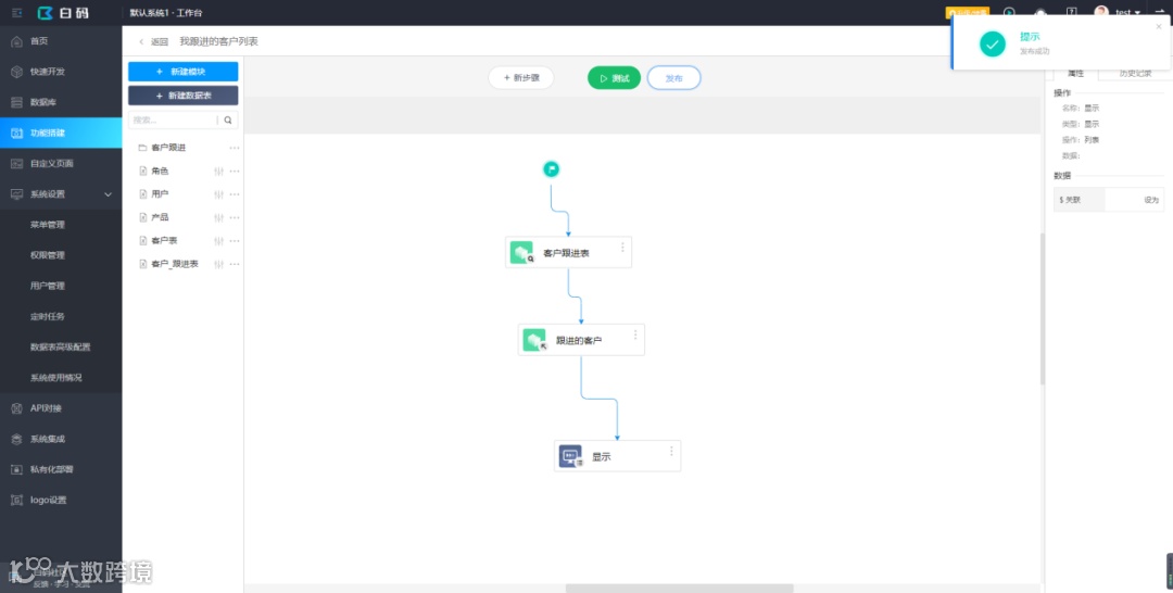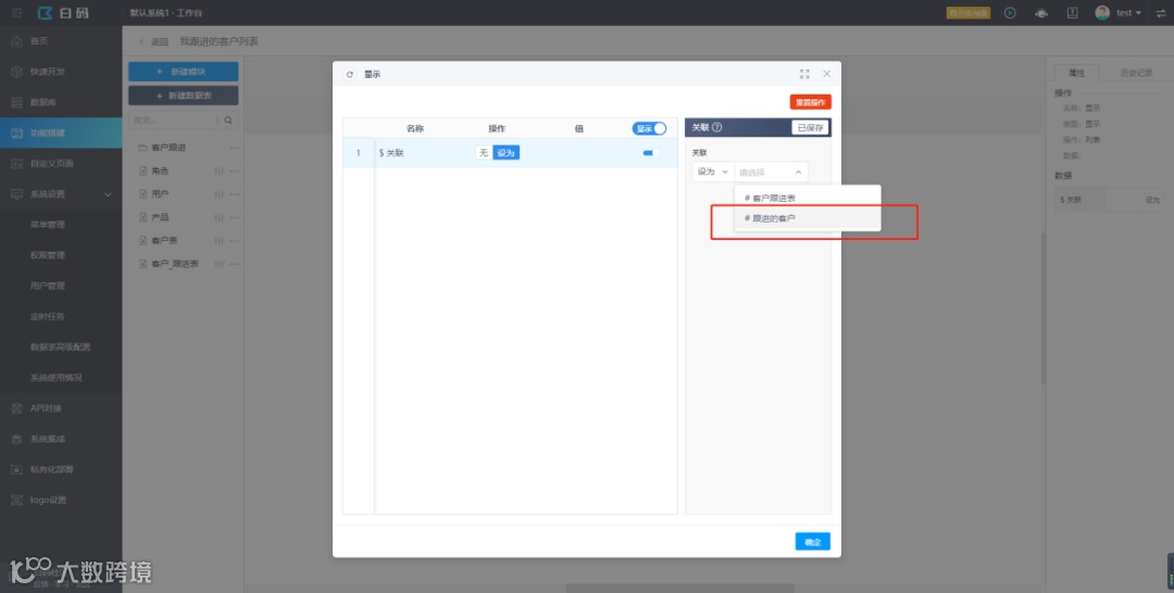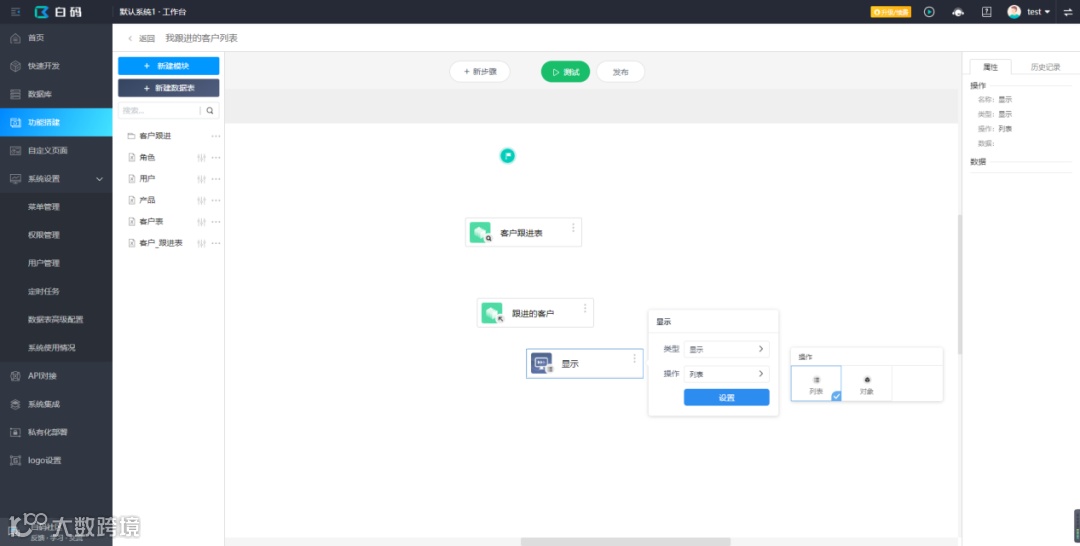 添加显示步骤,显示获取到的“跟进客户”数据。