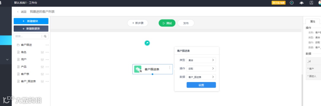 点开创建的数据集,添加一个步骤用于获取客户跟进表数据: