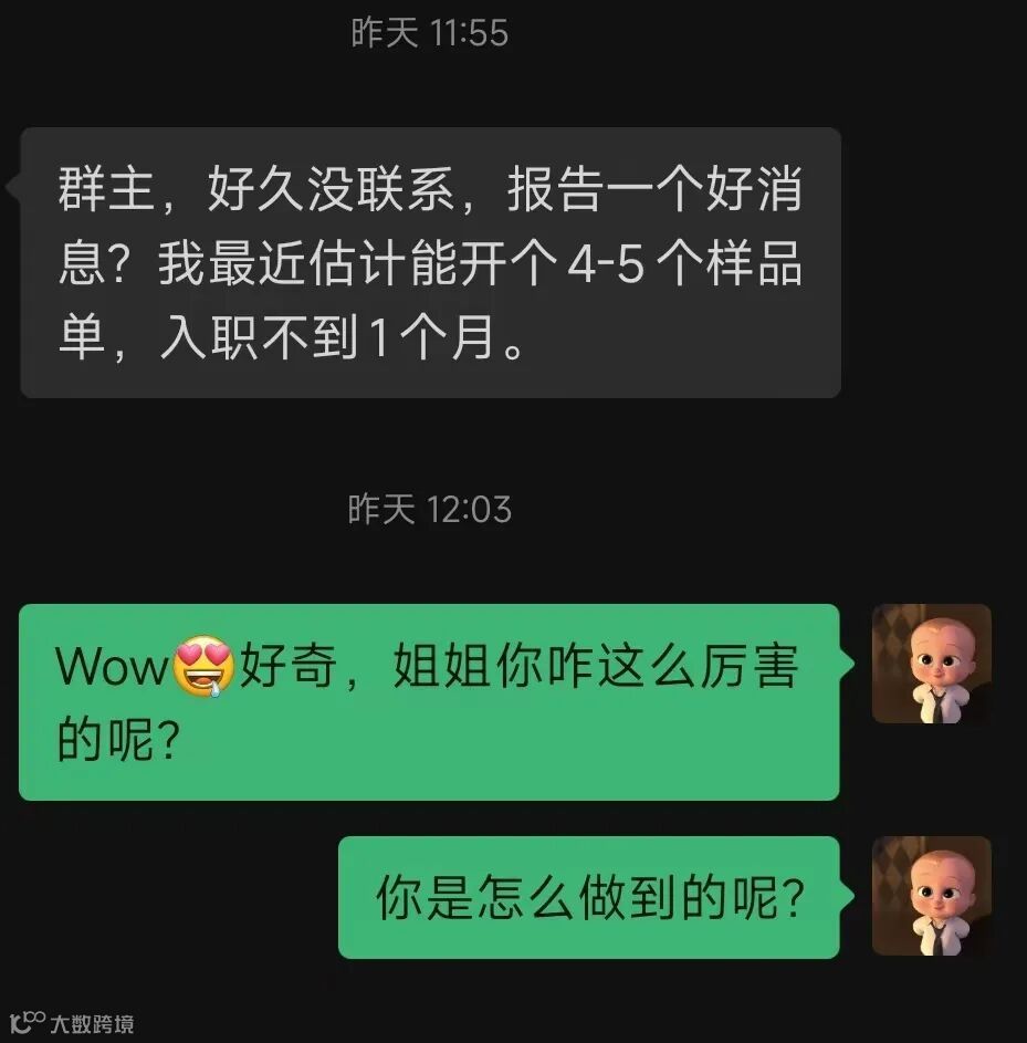 收获其实也很大的,你会知道你的同行的动态,啊哈,上周还在给客人推新品,下周要寄样品了。