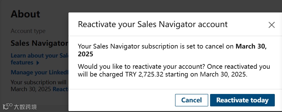 对比一下,Linkedin sales navigator 官方 4200 CNY 一年,如果土区 是2735 里拉,折合下来五百多人民币,是不是感觉赚了一个亿(当年 花几百买了个猫哥的领英课,知道了这个技能,这几年省下了不知道多少了,哈哈)