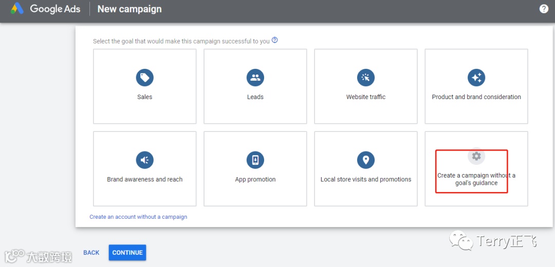接着系统会让你选择 广告系列 的目标,暂时不用选择,点 继续: