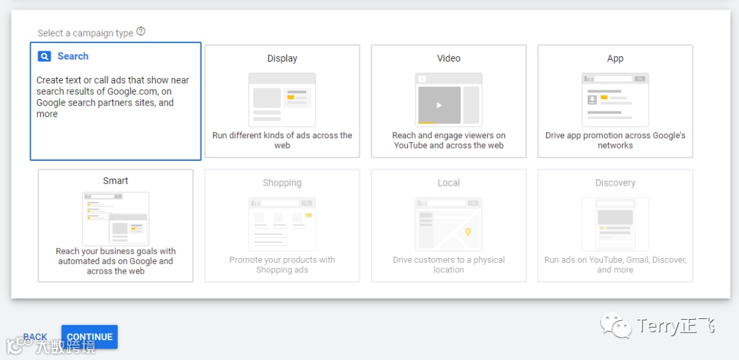 广告系列 类型,暂时 选个 搜索广告 就好: