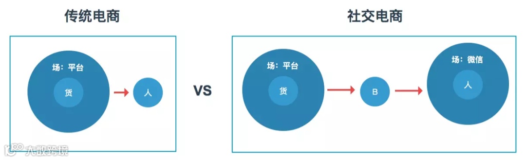 图:传统电商模式对比社交电商模式