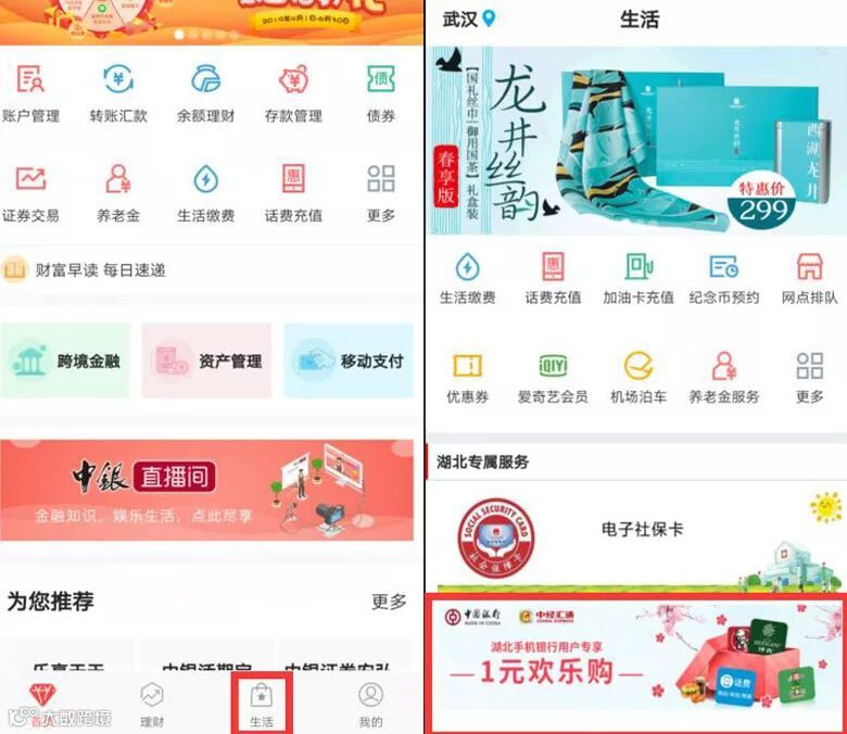 湖北地区中行用户在中国银行手机银行“生活”专区“湖北专属服务”栏目一元欢乐购页面支付1元即可获得由中经汇通合作商提供的10元话费、肯德基、仟吉、百果园中的一种。活动名额有限,用完即止。
