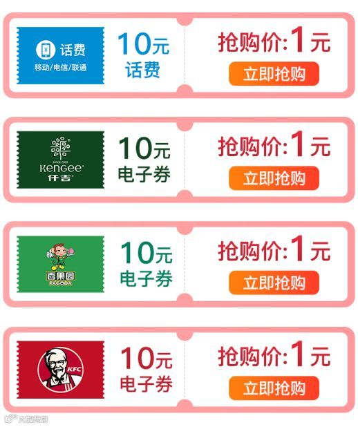 (4)购买成功后,肯德基、仟吉、百果园10元电子券将实时发送给客户,客户将通过活动页面“订单查询”及手机短信查询电子券详情。兑换成功后电子券有效期60天,请及时在线下门店内进行消费使用。
