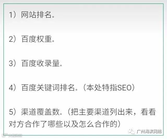 3)渠道覆盖数。(把主要渠道列出来,看看对方合作了哪些以及怎么合作的)