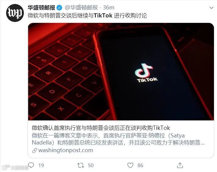 同日,美国微软公司官网发表声明,将继续寻求收购TikTok在美国的可能性!