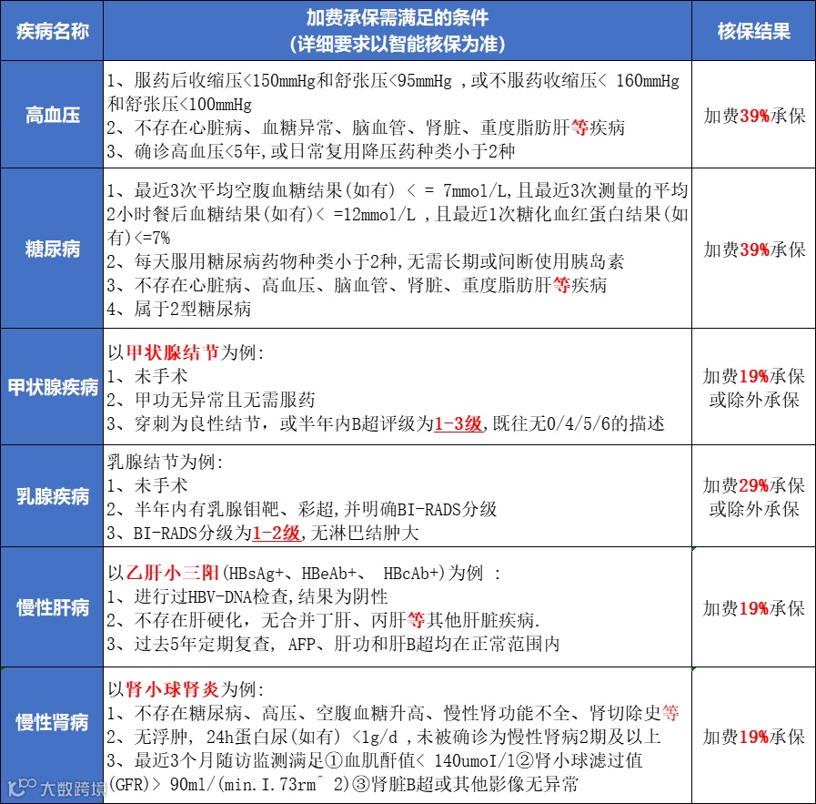 为了方便大家直观看到,整理出具体的核保要求: