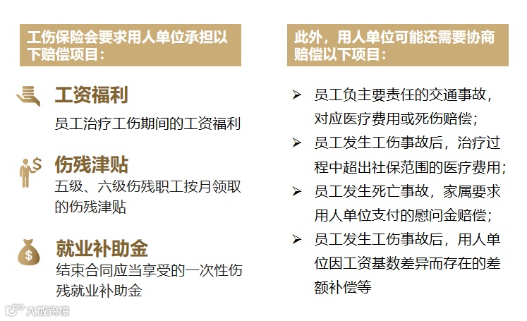 有些企业会缴纳工伤保险,但也不能完全覆盖掉员工风险。工伤保险只支付部分赔偿项目,剩余的都由企业来承担,如下每一项都是大额支出!