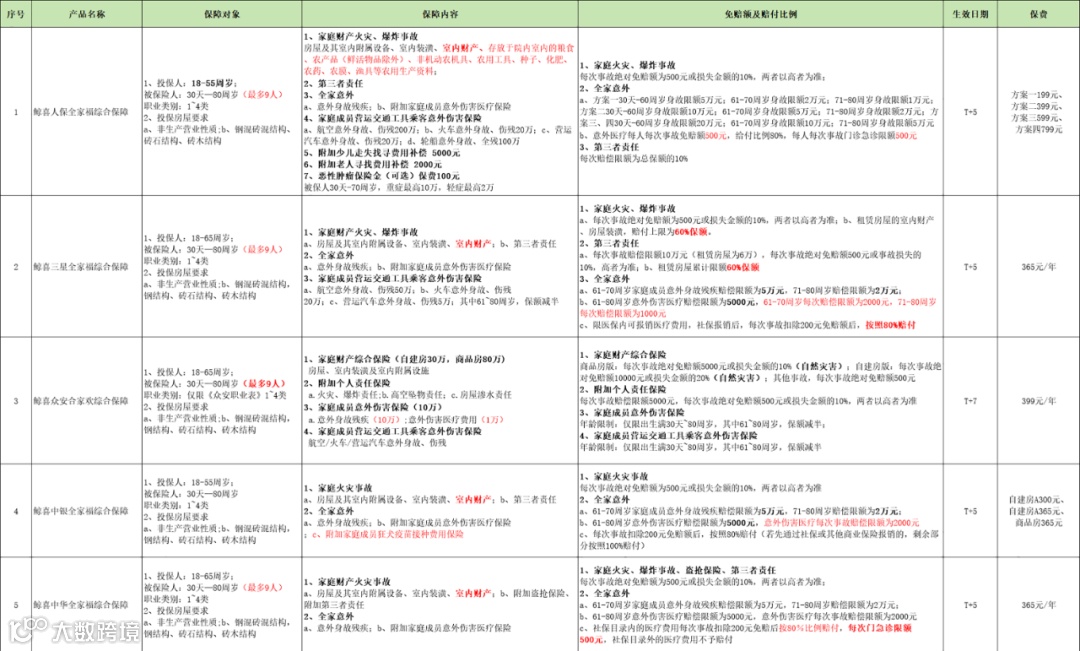 小鲸平台在售家财险产品一览表