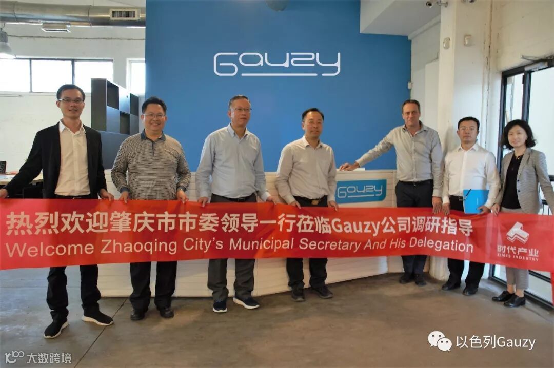 2018年11月4日,肇庆高新区管委会主任王哲先生、鼎湖区委书记陈宇航先生、肇庆新区管委会主任钟伟军先生、肇庆市商务局局长林伟文先生、肇庆市改革办科长邓校先生、时代中国控股有限公司产业集团产发中心总监杨爽女士等一行抵达以色列,参观和考察了位于特拉维夫的Gauzy公司,Gauzy作为他们以色列此行的第一站,是他们此行中的重点高科技企业。