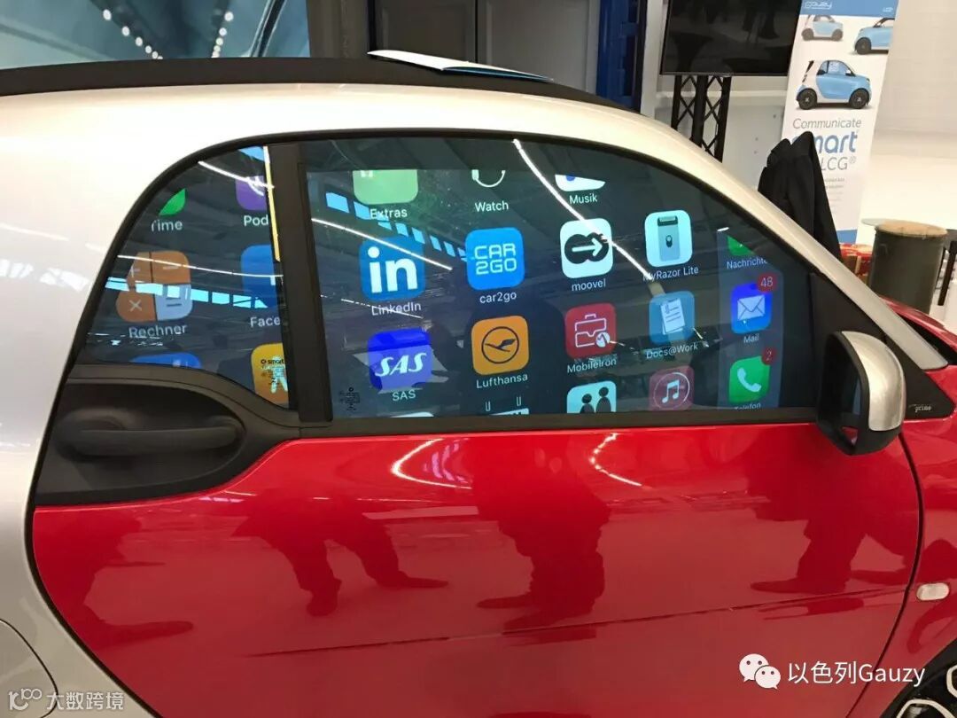 4,戴姆勒(奔驰母公司)汽车公司项目,全景天窗上可调光的遮阳、豪华车辆的隐私隔离,在所有窗户中分段遮阳,特别是车厢中部,采用图案化LCG®,可替代换挡风玻璃上的遮阳板具有不同水平不透明度的可调光窗户,车内娱乐、信息共享等等