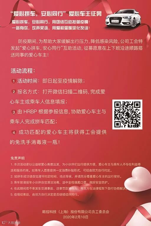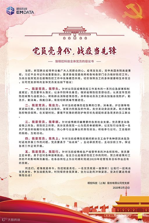 眼控科技还发起“党员亮身份,战疫当先锋”和“爱心拼车,安心同行”等暖心活动,号召眼控人团结一致,共同抗疫。