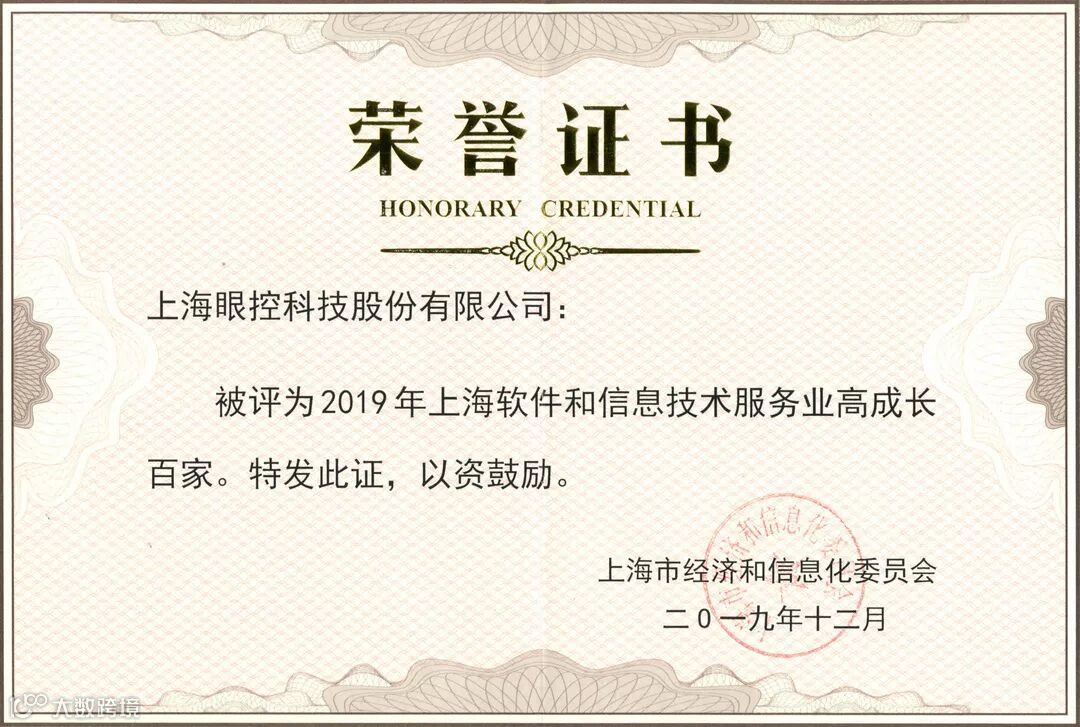 在经信委公示的“2019上海软件和信息技术服务业高成长百家”企业名单中,眼控科技凭借雄厚的研发实力、自主创新能力及突出的行业影响力荣列其中。