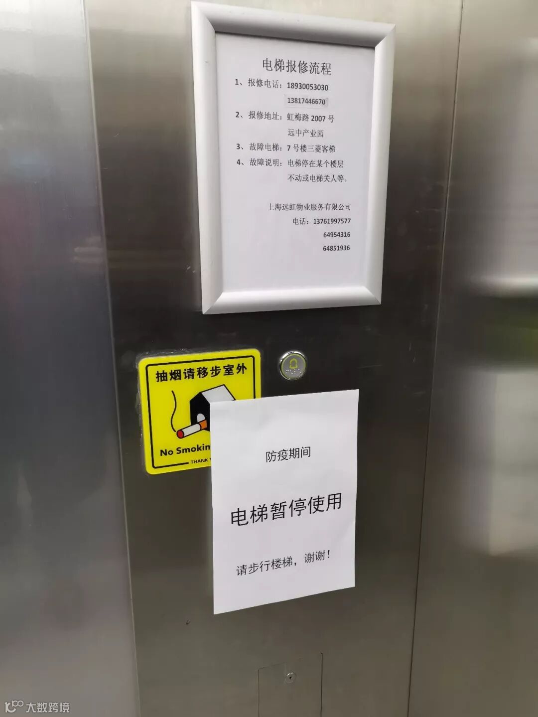 防疫期间,公司电梯每日消毒但暂停使用,同事们多走楼梯,多多运动,争当微信步数第一名。