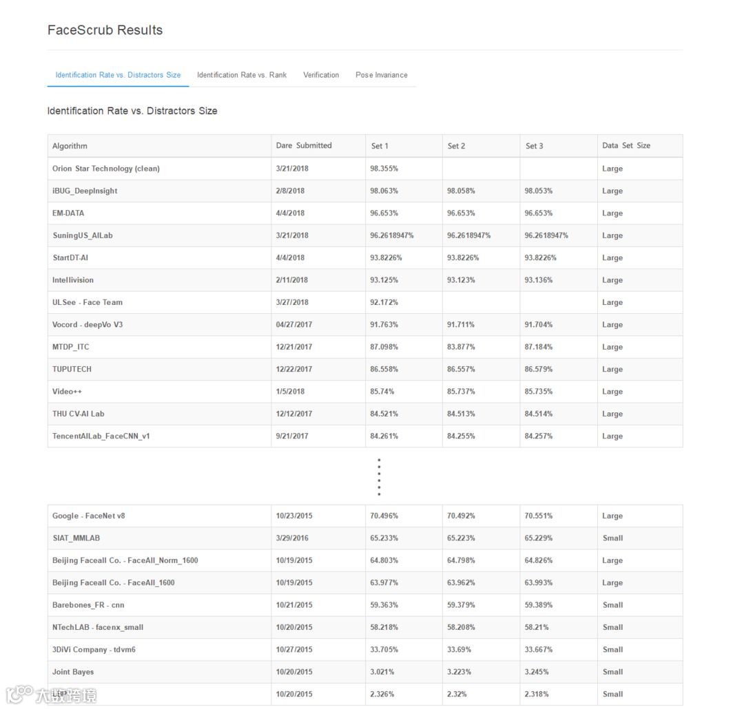 在人脸识别库MegaFace中获得全球第三