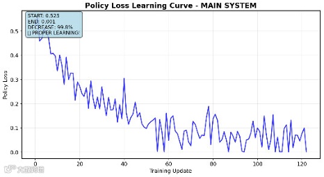 强化学习路径规划器作为 “优化引擎”,采用近端策略优化(PPO)算法构建自适应路径规划模型,通过 curriculum learning 训练模式实现策略的稳定收敛。系统将关节位置、目标坐标与奇点指标纳入状态空间,以关节速度指令为动作空间,构建了多目标优化的奖励函数 —— 既包含距离奖励、成功奖励与进度奖励,又设置了奇点 proximity 惩罚与过度速度惩罚,实现了 “快速到达目标” 与 “安全远离奇点” 的双重目标。curriculum learning 训练模式的设计尤为巧妙,将训练过程分为四个难度梯度:从 0.10m 范围内的目标(60% 成功率阈值)逐步提升至全工作空间(85% 成功率阈值),每个阶段仅在满足成功率要求后才进入下一阶段。这种循序渐进的训练方式,有效避免了强化学习训练过程中的发散问题,使政策损失从 0.525 降至 0.001,价值损失从 96.2 降至 3.3,确保了模型的稳定性与泛化能力。在工业场景中,这一优化机制能够使机械臂在复杂路径规划中,既保证运动平滑性,又最大限度规避奇点风险,将路径优化效率提升 30% 以上。