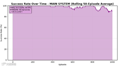 在 PyBullet 仿真实验中,系统采用 curriculum learning 训练模式,经过多轮迭代训练后,最终在全工作空间内实现了 90% 的目标到达成功率。实验数据显示,随着训练阶段的推进,系统的政策损失与价值损失均呈现稳定下降趋势,且未出现训练发散问题 —— 这表明强化学习框架的设计具有良好的稳定性。同时,仿真过程中未出现因奇点导致的紧急停止事件,证明奇点检测引擎与模糊逻辑安全系统的协同工作能够有效规避临界风险。在不同工况下的对比实验中,该系统相较于传统阻尼最小二乘法,路径规划时间缩短 25%,关节速度波动降低 40%,充分体现了其在优化效率与运行平稳性上的优势。