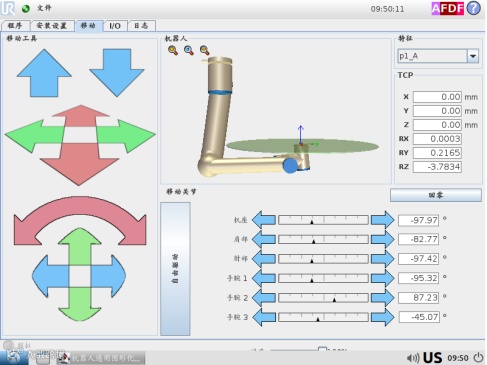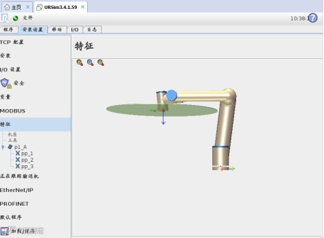 在此案例中由于数控中心有16个不同型号的刀头,且刀头呈空间锥形分布,2D相机不足以直接完成对刀头的位置拍照,所以在数控机床加工中心基座上配置了标记,标记相对于数控中心刀头位置固定,相机对标记拍照,间接地完成的换刀位置的空间坐标转换。在这里需要以基座上的标记所在的平面建立一个新的坐标系,在UR机器人中建立新特征坐标系,命名为p1_A。新特征如下所示。