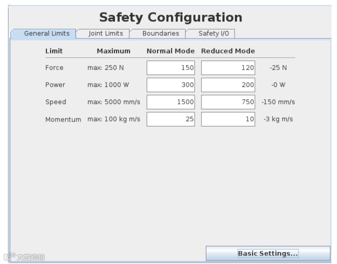 缩减模式可以设置,碰撞力、机器人运行功率、机器人运行速度以及碰撞动量。