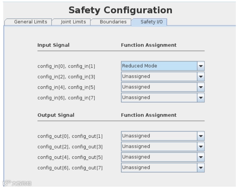 缩减模式可以由安全信号来触发。当机器人在运动过程当中,一旦安全信号被触发,机器人就从正常模式切换到缩减模式。