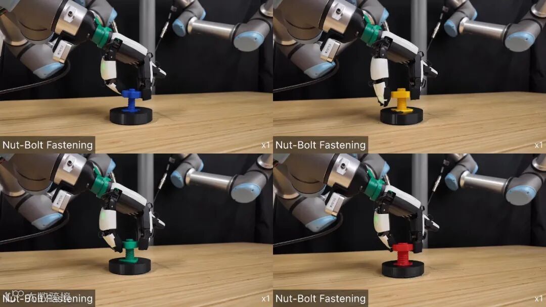 1. 在精密螺丝拧紧任务中,该文方法的成功率为 85.7%,操作力矩误差小于 0.5N・m,而对比方法中表现最好的少量现实数据微调方法成功率为 78.3%,力矩误差为 0.8N・m。