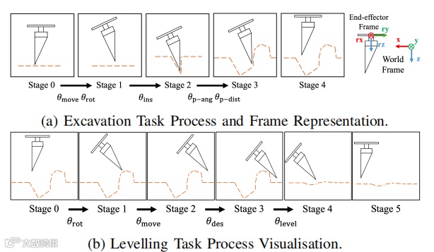无演示参数初始化能力弱:技能参数的初始值依赖人类演示数据提取,对于无演示的新任务(如挖掘特殊形状的坑洞),需人工定义参数维度与初始范围,增加了技术落地的门槛。