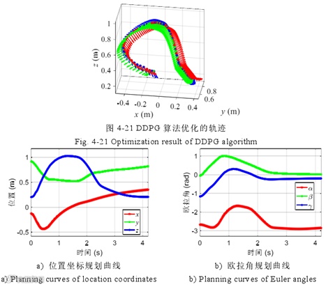 图5 DDPG 算法训练后物体运动路径位姿各维度分量规划曲线