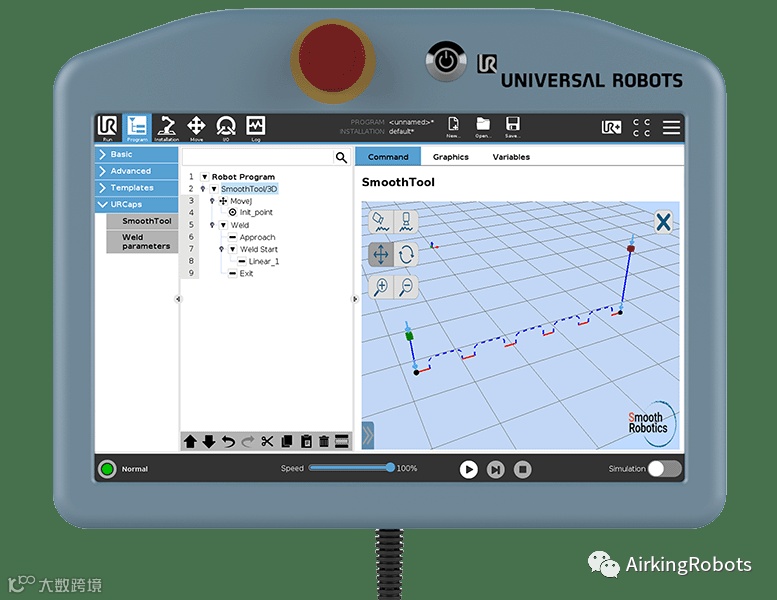 2.运行在示教器上的直观编程软件。这将引导操作员完成设置焊接参数的过程,并教会机器人如何逐步执行它。它还允许操作员在 3D 查看器中查看刀具路径,而无需让机器人手臂在空运行中执行运动。